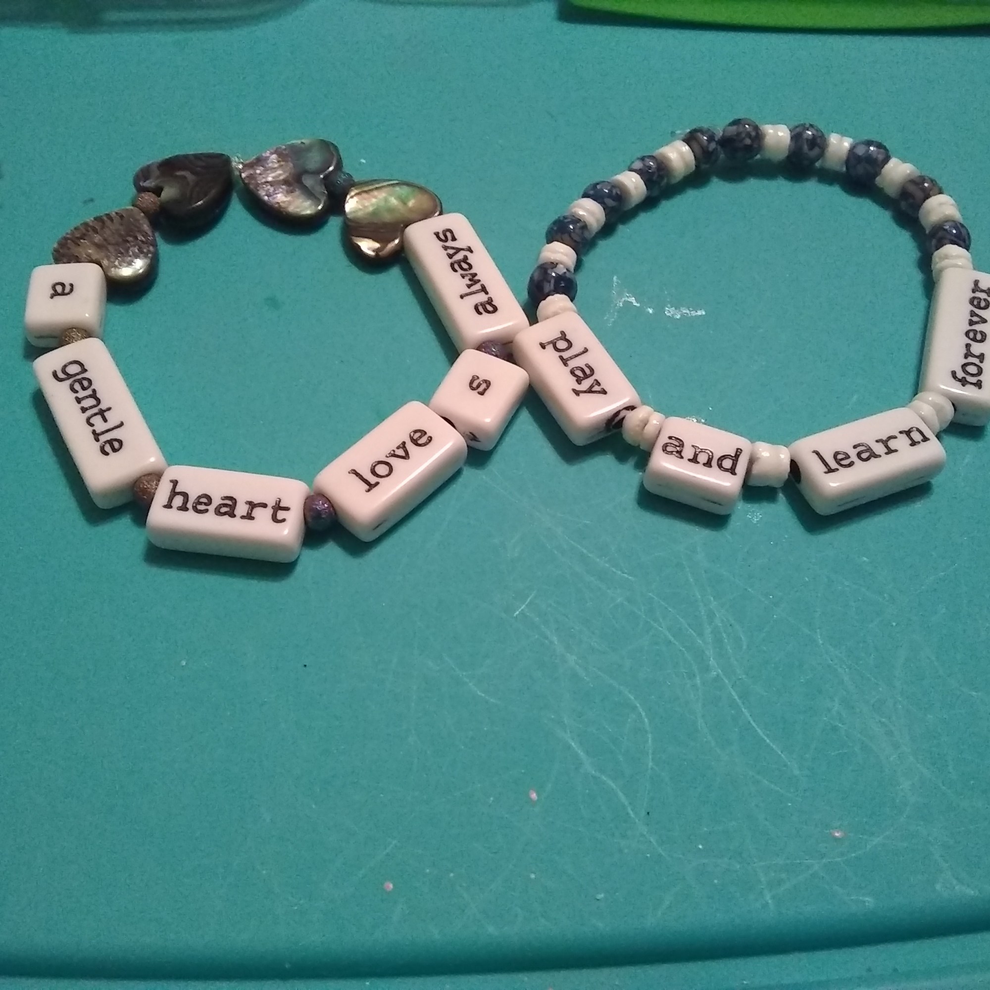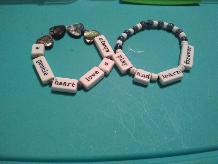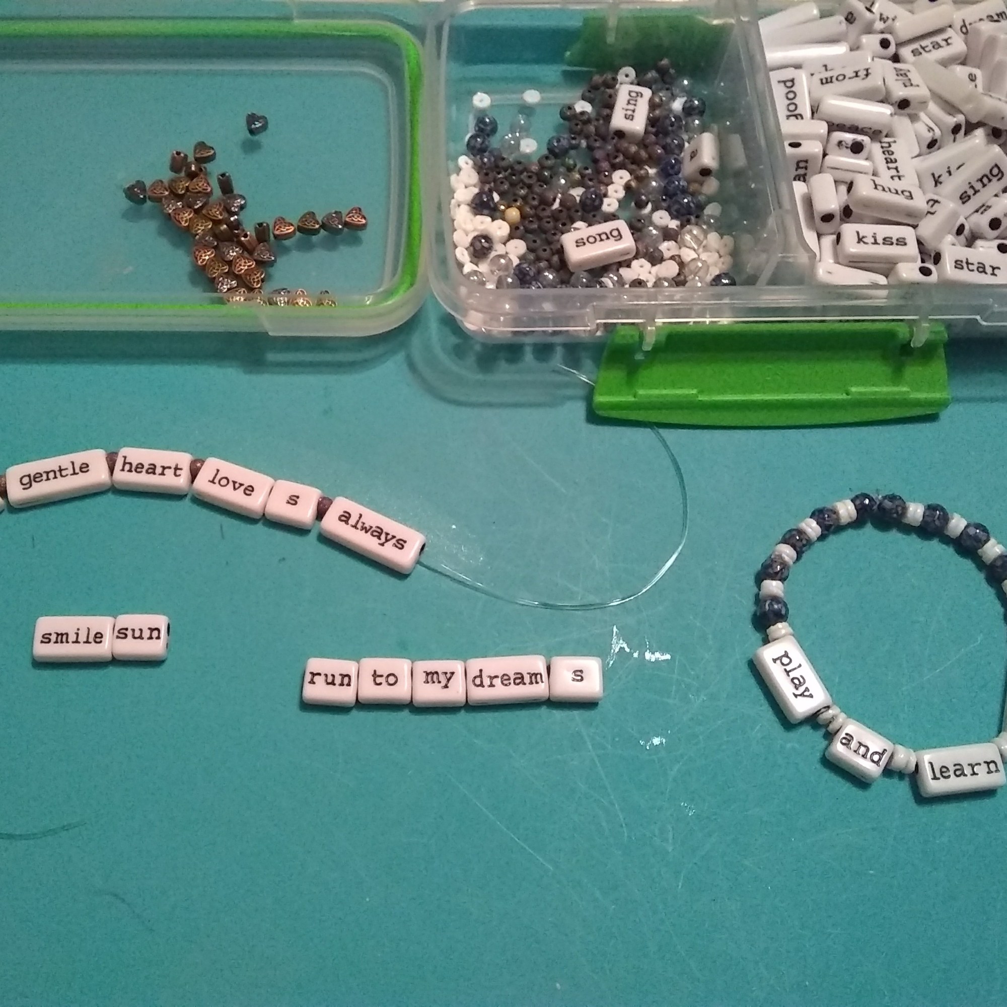 Two of my biggest issues with this project has been the lack of word variety among the word beads. The other issue is the block beads have a word on each side and sometimes the words will flip to the opposite word thus causing the line to be non-sensical. LOL!