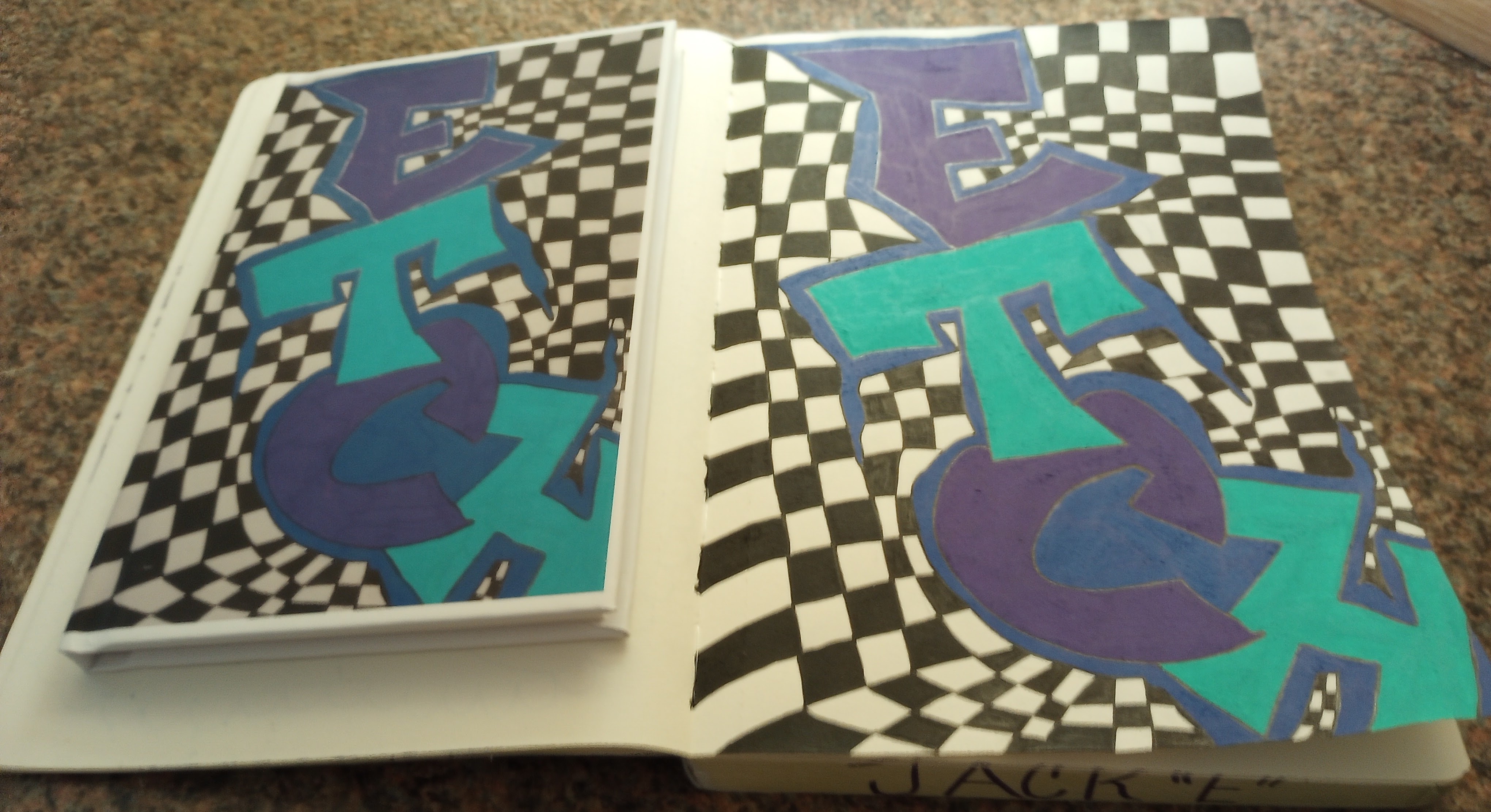 On the spine of my new journal I have “Of Etchings & Verses”. I wanted my personalized journal to house both verses and drawings. I dubbed it Etchings… for two reasons. The most obvious reason is that the front cover reads: “ETCH”. The second reason is that it is reminiscent of when my mother called my drawings–“Etchings”.