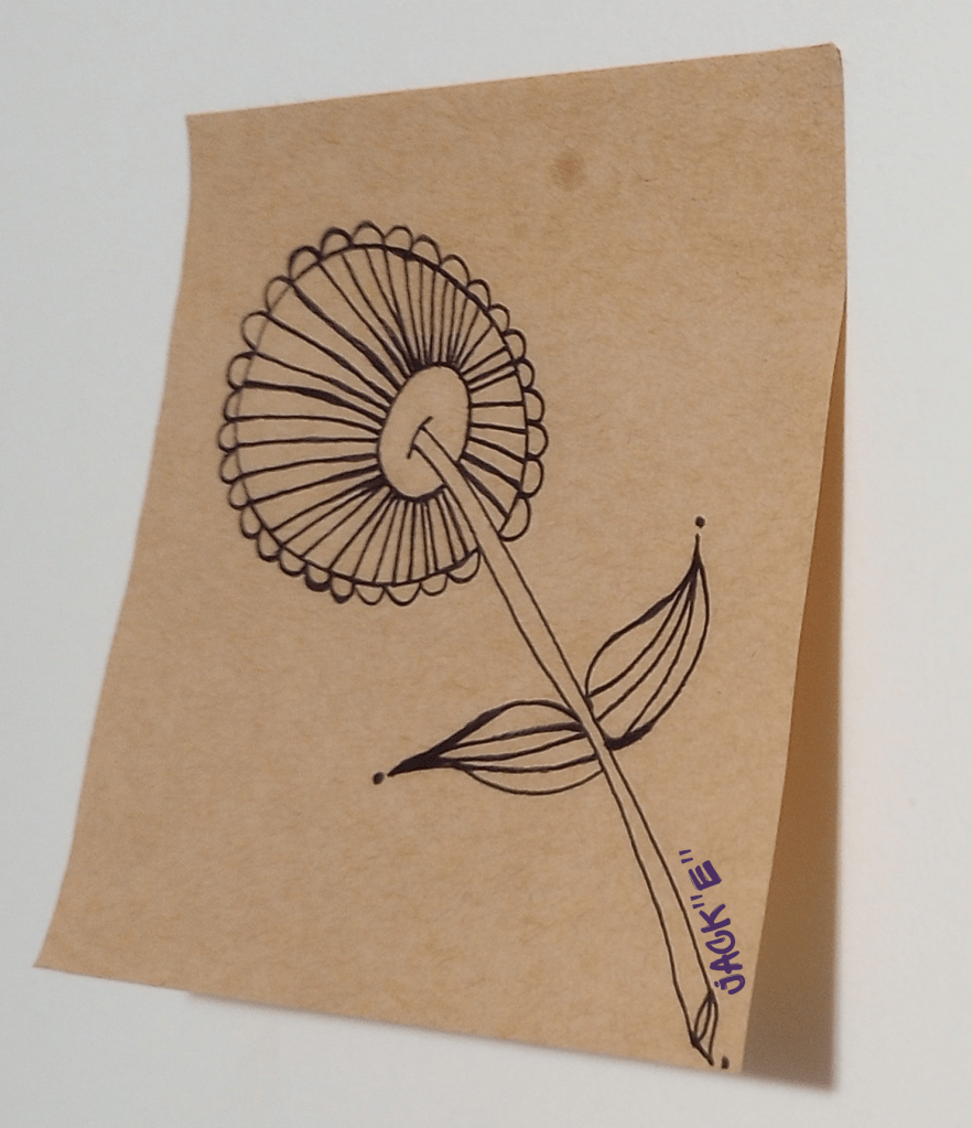 In October of 2023, I began to use a more portable canvas. I bought a 12 pack of kraft paper sticky notes. The venture began as a way to participate in Inktober. I did a parallel challenge where I made the attempt to either use the Inktober Challenge or draw a Zentangle. I cannot remember how many days I actually finished but I know I came close to finishing the month.
