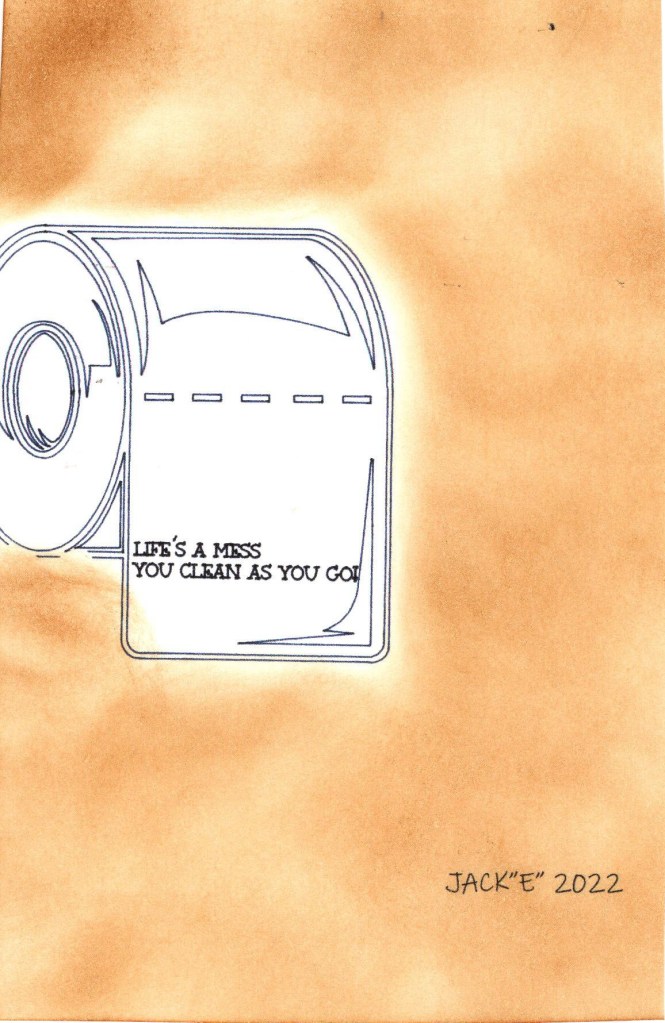 Mixed Media, poem, Cricut drawing, distress Inks. 4×6. JACK”E” 2022.